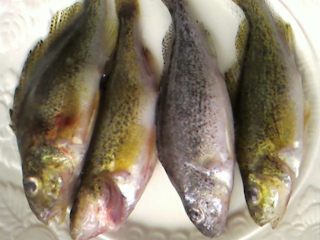 | Были в начале марта. Ловили рядом со стоянкой. Ёрш. Кто уходил с пруда говорили,что везде ёрш, другая рыба редко очень брала. В прикреплении (найдите разницу) все ерши желто-коричневые, а один был белый, интересно почему так?