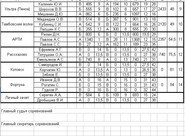 Личка: 3 место - Ардатов Константин (Тамбов-Москва) 2 место - Колесников Александр (Тамбов) 1 место - Савчук Александр (Липецк)